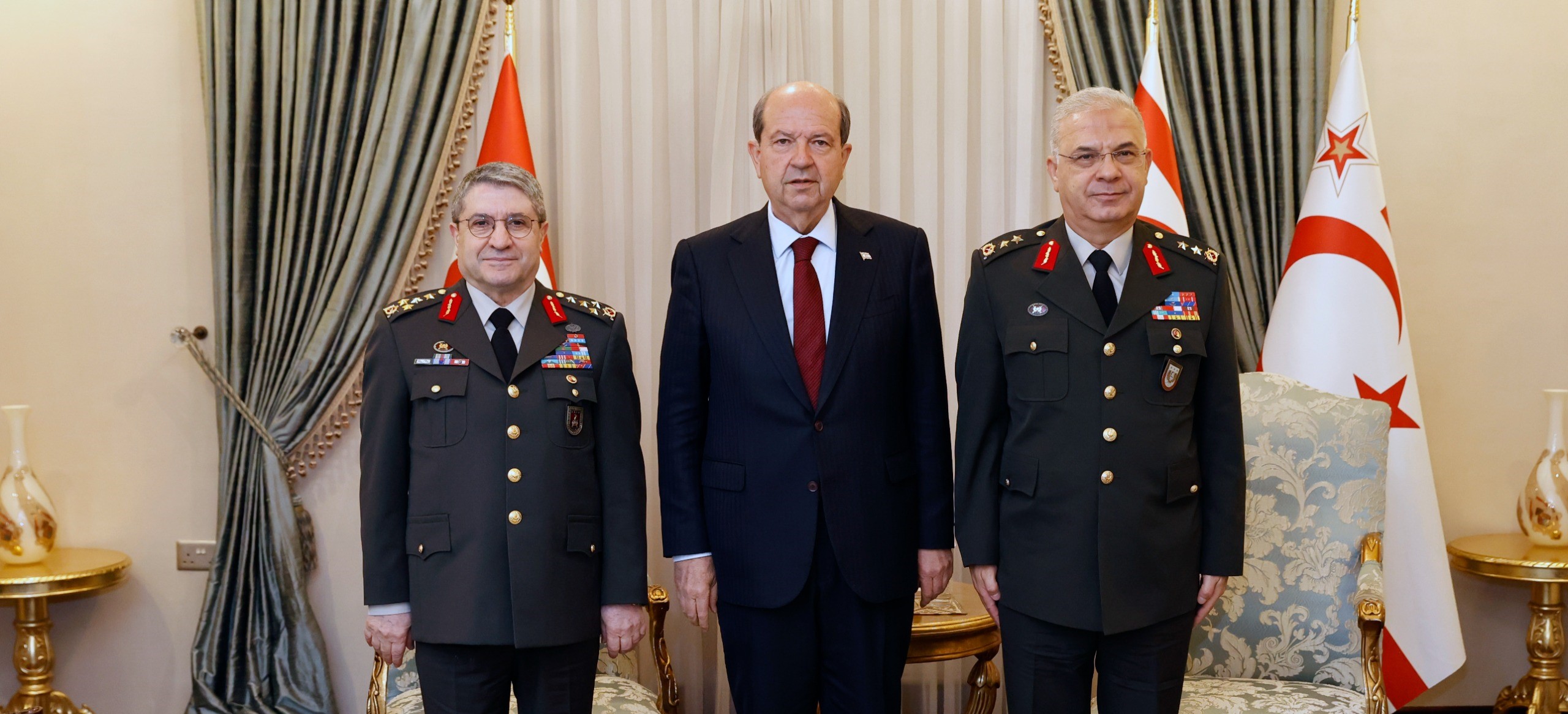 Cumhurbaşkanı Ersin Tatar, kabuldeki konuşmasında, Türk Silahlı Kuvvetleri’nin (TSK) Kıbrıs’taki barış, huzur ve güvenliğin teminatı olduğunu vurguladı.