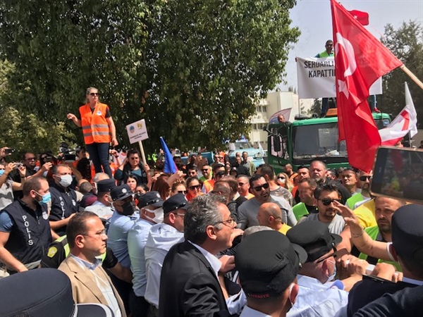“Birlik mücadele dayanışma”, “Direne direne kazanacağız” sloganları atılan eylemde, Lefkoşa trafiği de olumsuz etkinleniyor.