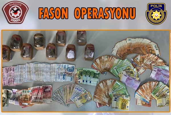 Operasyonda, uyuşturucu madde satışından elde edildiğine inanılan toplam 22 bin 865 TL, 39 bin 320 Euro, 2 bin 310 Dolar ve 1150 Sterlin nakit para da ele geçirilirken, S.H.(E-21), Y.B.(E-29), M.A.A.(E-21), İ.G.(K-22) ve Y.M.(E-28) tutuklandı.