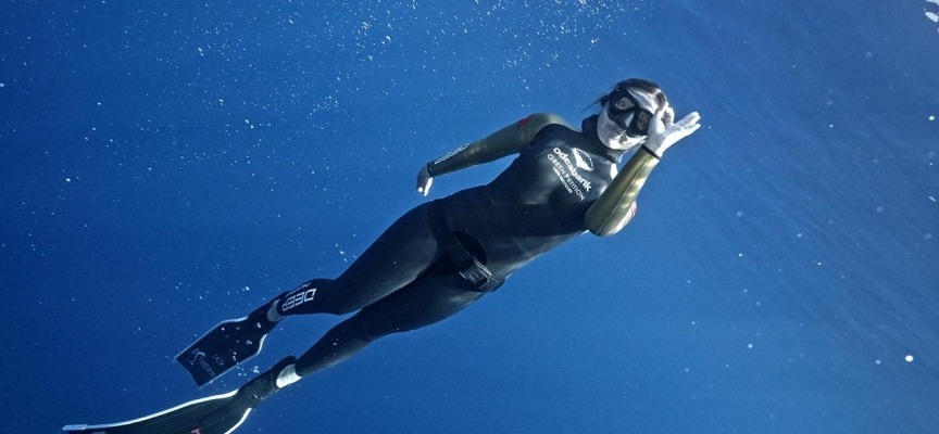 “Bu kategori, paletsiz şekilde bir ağırlık yardımıyla aşağıya indiğiniz ve kendi gücünüzle paletsiz, ipten destek alarak, yukarı çıktığınız bir branş. Bir asansörle inildiği için daha çok derin metrelere inmek çok kolay değil. Daha önce 110 metreyle rekor kırmıştım ama bu paletsiz olduğu için 100 metre çok iddialı bir rakam. Erkekler ve kadınlar rekorlarının üstünde. Birleşmiş Milletler’in sudaki yaşam savunucusu olarak iklim krizinin altının çizilmesi ve ülkemizin bayrağını dalgalandırmak açısından bu rekor benim için çok önemliydi.”